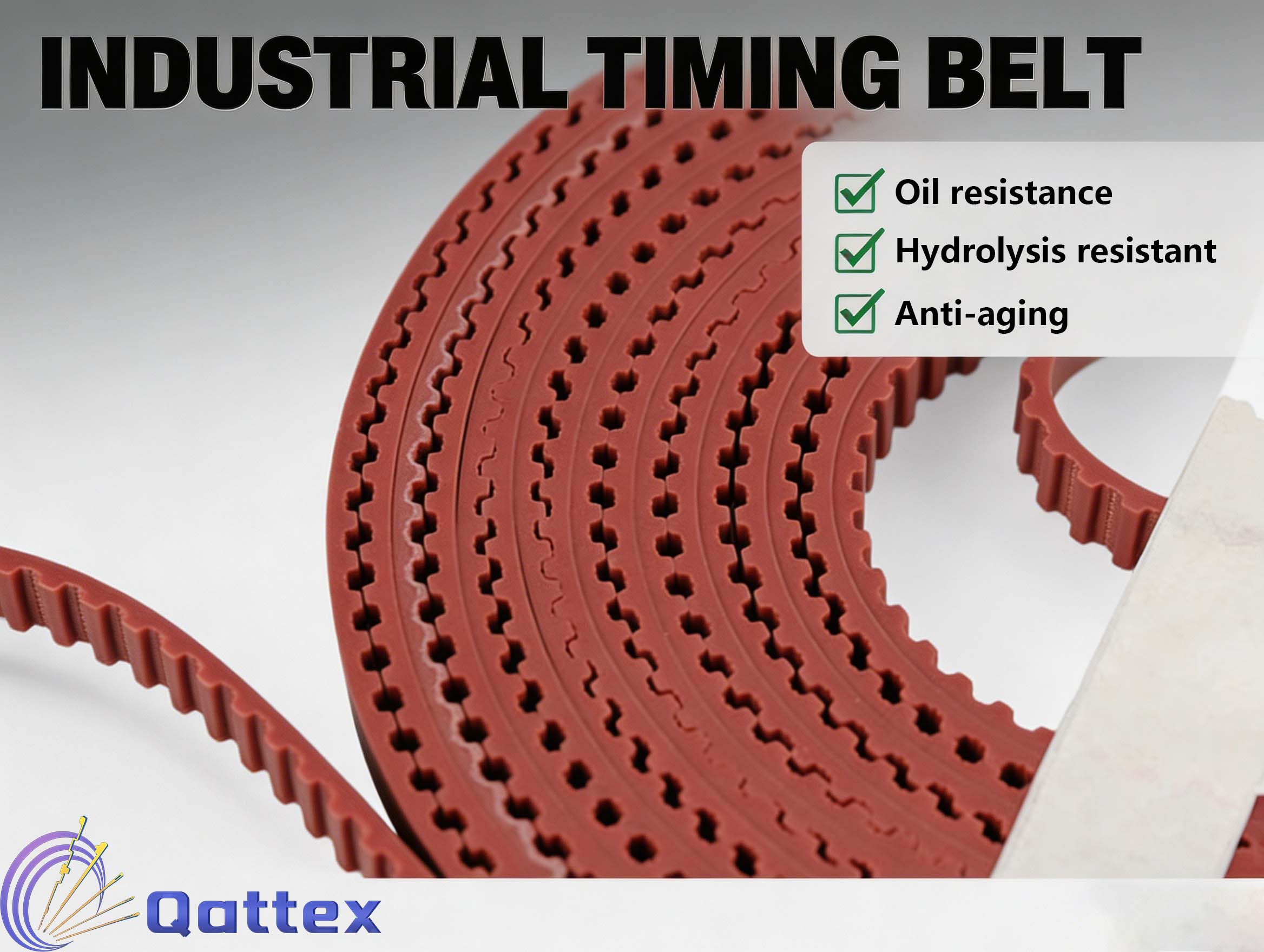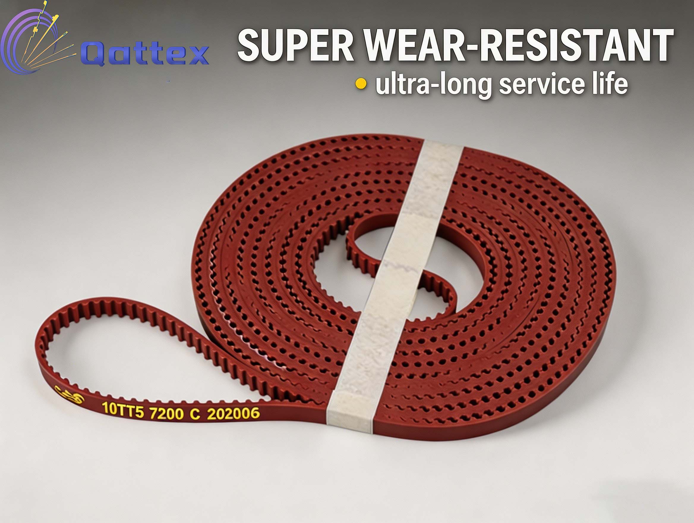Qattex is a professional supplier focusing on high-quality textile machinery parts. This 10TT5 timing belt is our premium-grade transmission component independently developed and produced for circular knitting machines.